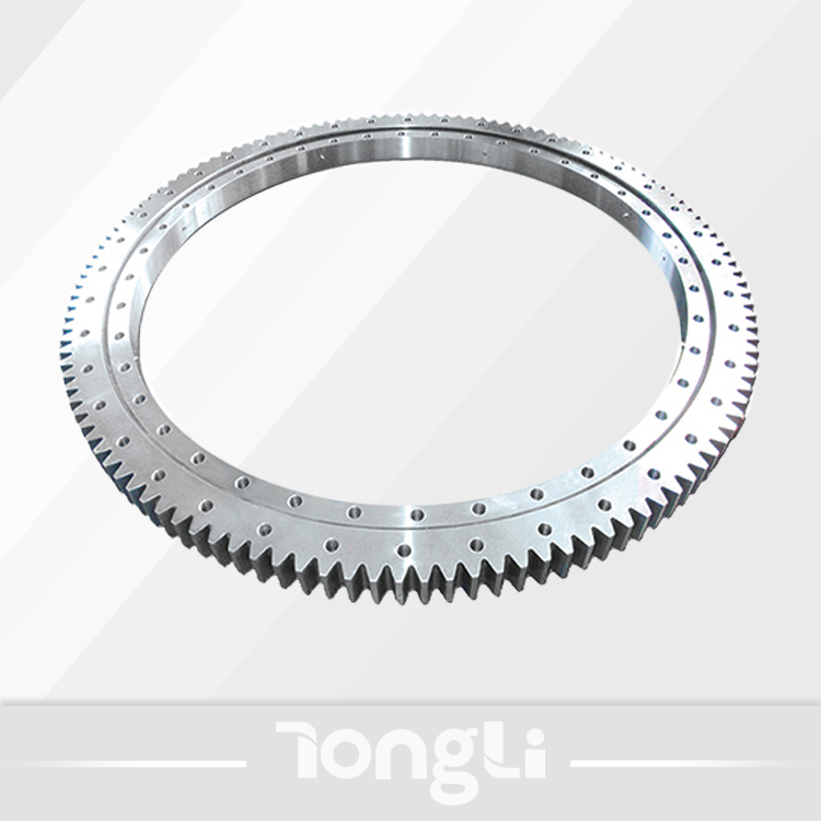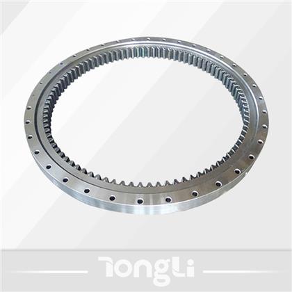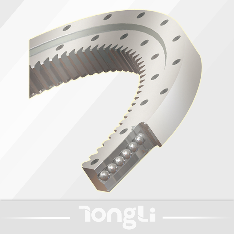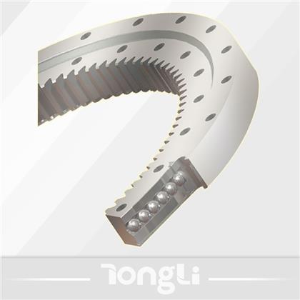 單排球式回轉(zhuǎn)支承以一排鋼球作為滾動(dòng)體,鋼球與滾道四點(diǎn)接觸,能同時(shí)承受軸向力、徑向力和傾覆力矩。滾道中心直徑≤1800mm,優(yōu)先選用單排球式回轉(zhuǎn)支承。