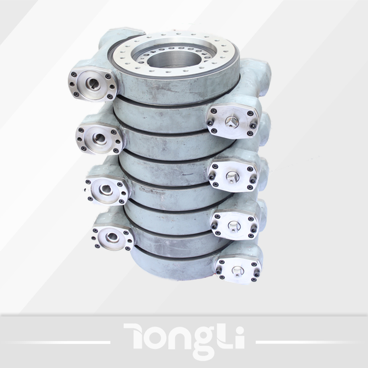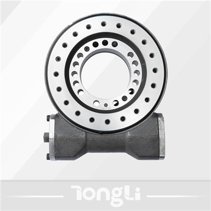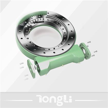 回轉(zhuǎn)驅(qū)動(dòng)裝置是一種新型回轉(zhuǎn)類產(chǎn)品,通常由回轉(zhuǎn)支承、蝸桿、馬達(dá)、殼體等部分組成,既有回轉(zhuǎn)支承的連接、旋轉(zhuǎn)、支承等功能,又有蝸桿傳動(dòng)的結(jié)構(gòu)緊湊、輸出轉(zhuǎn)矩大、傳動(dòng)平穩(wěn)等優(yōu)點(diǎn),使用壽命長,安裝簡便,大量節(jié)省安裝空間,易于維護(hù),可節(jié)約成本。