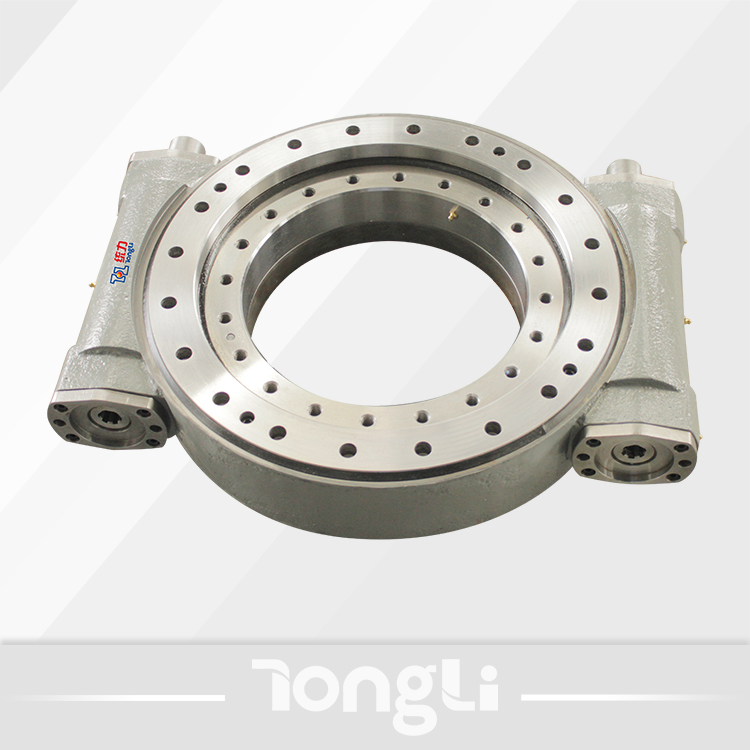 回轉(zhuǎn)驅(qū)動(dòng)裝置是一種新型回轉(zhuǎn)類產(chǎn)品,通常由回轉(zhuǎn)支承、蝸桿、馬達(dá)、殼體等部分組成,既有回轉(zhuǎn)支承的連接、旋轉(zhuǎn)、支承等功能,又有蝸桿傳動(dòng)的結(jié)構(gòu)緊湊、輸出轉(zhuǎn)矩大、傳動(dòng)平穩(wěn)等優(yōu)點(diǎn),使用壽命長(zhǎng),安裝簡(jiǎn)便,大量節(jié)省安裝空間,易于維護(hù),可節(jié)約成本。